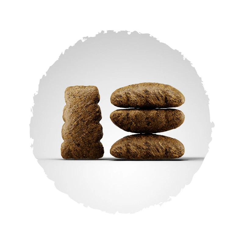 Getrocknetes Geflügelprotein (Geflügel 12,8 %, Ente 15,0 %); Vollkornmais; Reis; Rübenfaser; Geflügelfett; hydrolysiertes Geflügelprotein; Mineralstoffe; Chicorée-Wurzel (gemahlen, natürliche Quelle von Inulin).